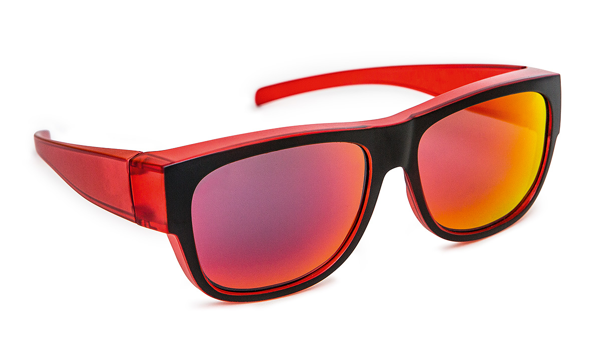 896910 - sluneční brýle přes brýle malé, vel. 54x40 mm, červené se zrcadlovými čočkami
